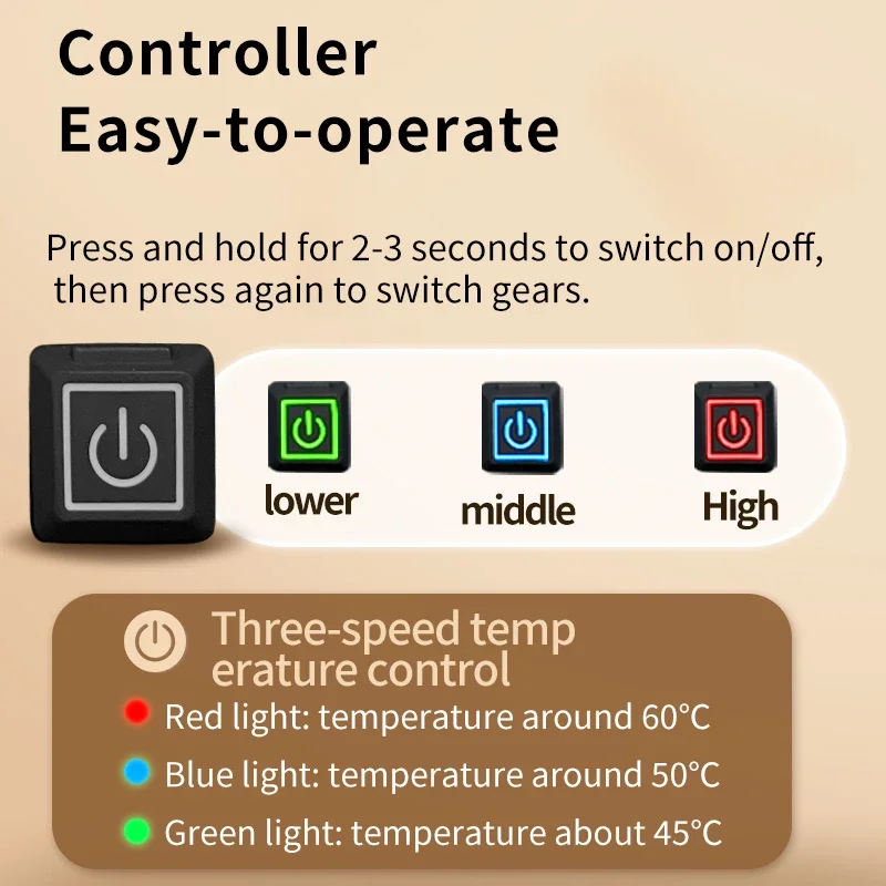 Heating Temperature: 3-Level Adjustment,Red 65℃, Blue 55℃, Green45℃
